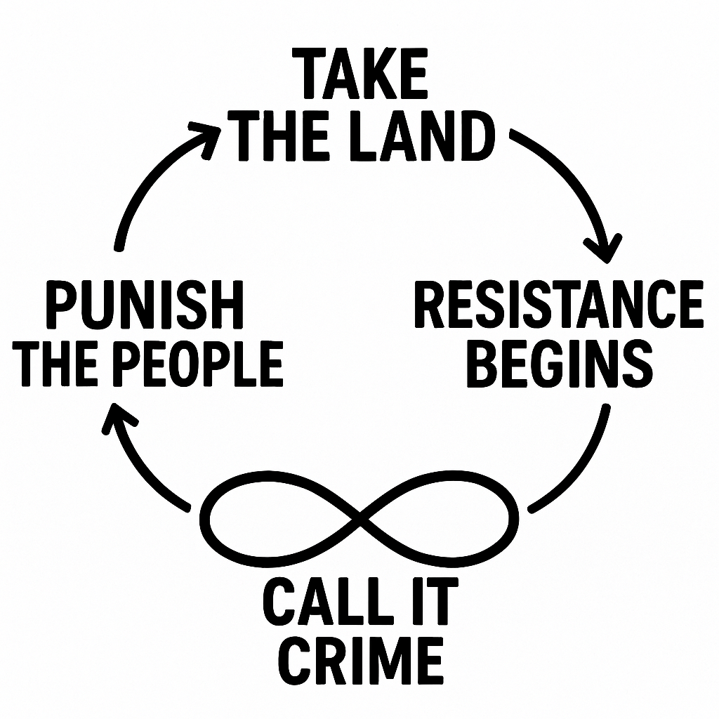 Folkedrab sker ikke ud af det blå. Det designes. I fire enkle trin. 1. TAG LANDET Tag kontrollen. Byg bosættelser. Fjern retten til hjem. 2. KALD MODSTAND FOR TERROR Når folk gør modstand, stempl dem som farlige, kriminelle, ekstreme. 3. STRAF BEFOLKNINGEN Fængslinger, husnedrivninger, bombninger. Gør modstand dyrt. 4. GØR DET NORMALT Pak det ind i lov, sikkerhed og “vi forsvarer os bare”. Det er loopet. Det er designet. Danish Genocide Design Principles” er ikke bare en titel – det er en virkelighed, vi skal turde se i øjnene. Danmark har som nation været en del af strukturer, der muliggør og normaliserer folkedrab – både historisk og i nutidens globale magtspil. Denne artikel udfolder, hvordan begreber som sikkerhed, lov og ‘fremskridt’ bruges som dække for kolonial vold og systematisk undertrykkelse.